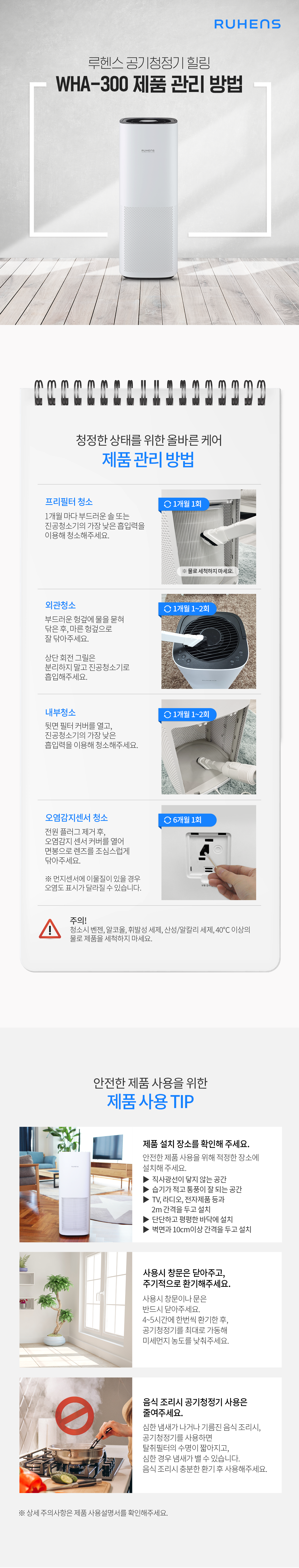 루헨스 힐링 공기청정기(WHA-300) 제품 관리 방법